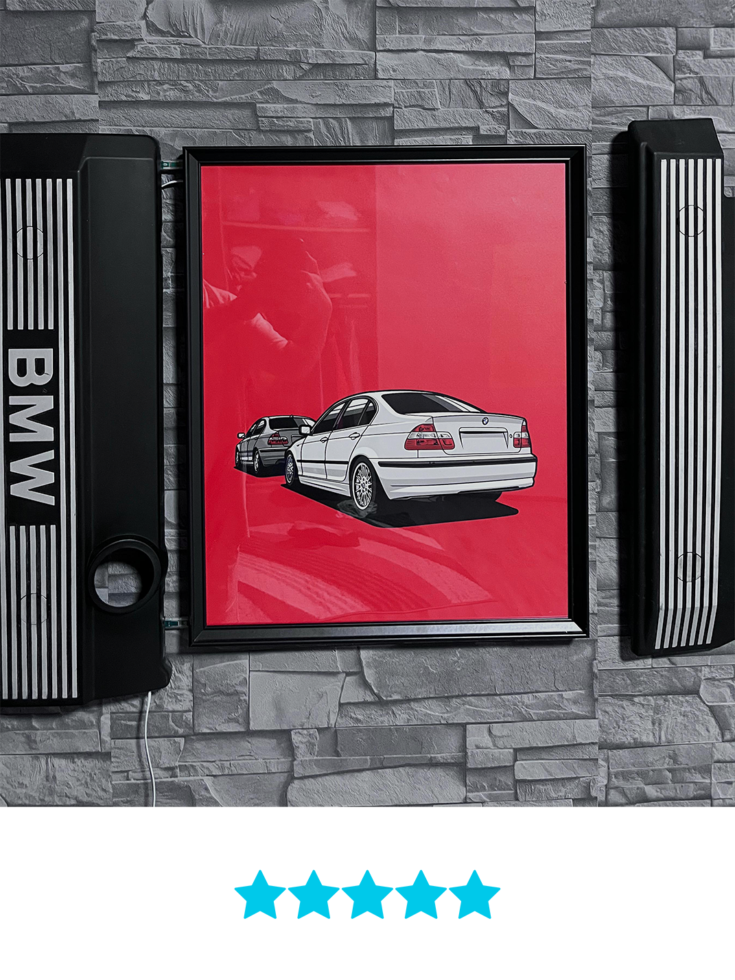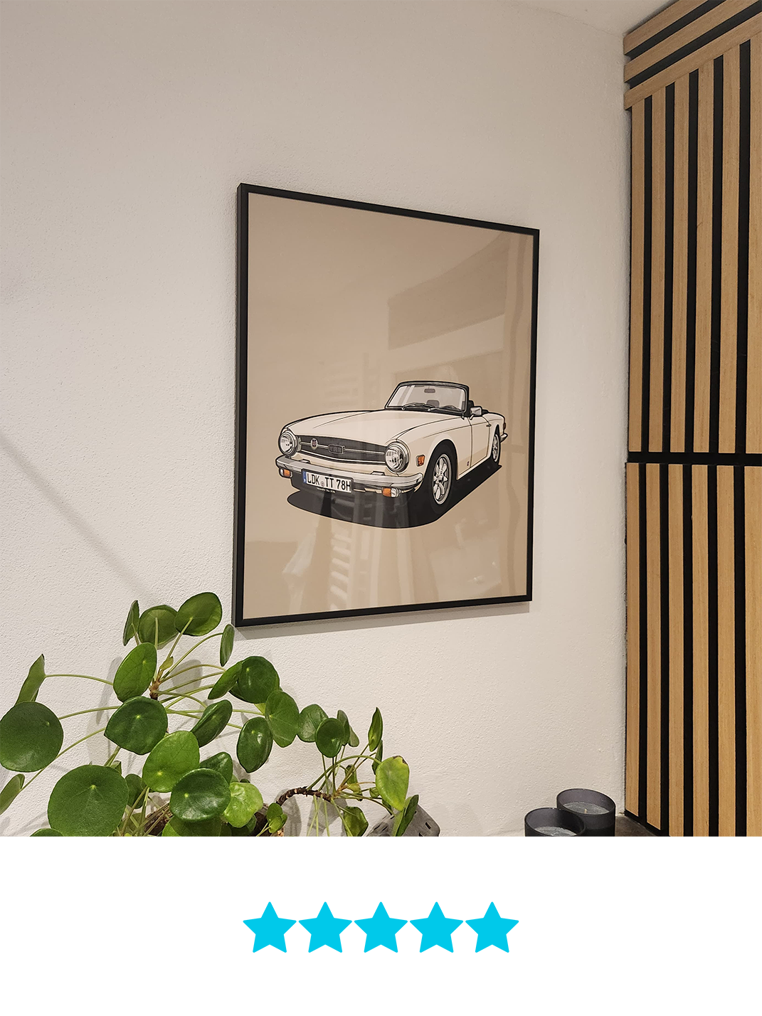 Hab das Teil direkt überm Setup aufgehängt. Qualität vom Druck ist sauber, und es wird wirklich jedes Detail von meinem Auto gezeigt. Kam schnell an, alles easy. Würd ich direkt wieder kaufen. -